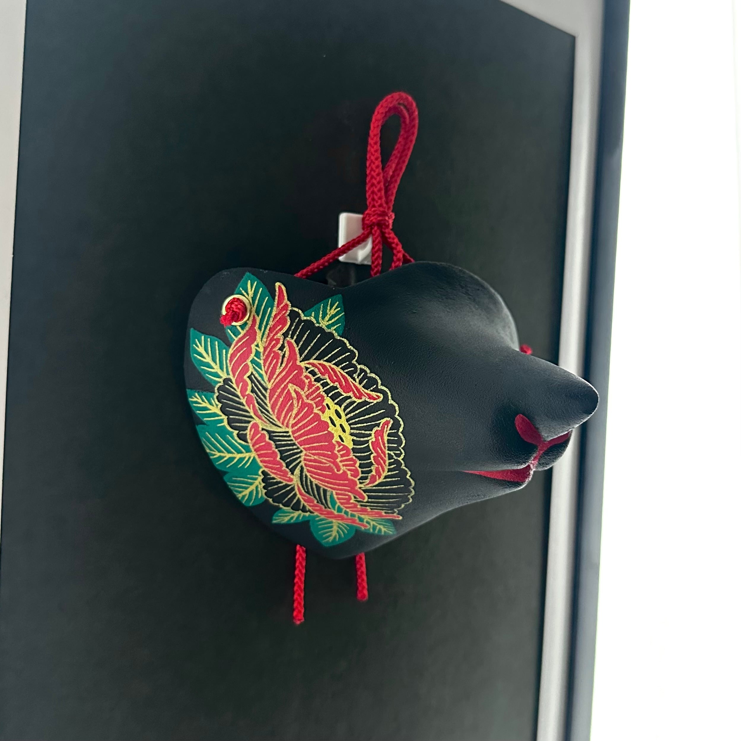 一点物の口元狐面です。 蝶丹(ちょうたん) 蝶と牡丹の組み合わせが好き〜 サイズ 横:約11.5㎝ 縦:約11㎝ 高さ:約10㎝
